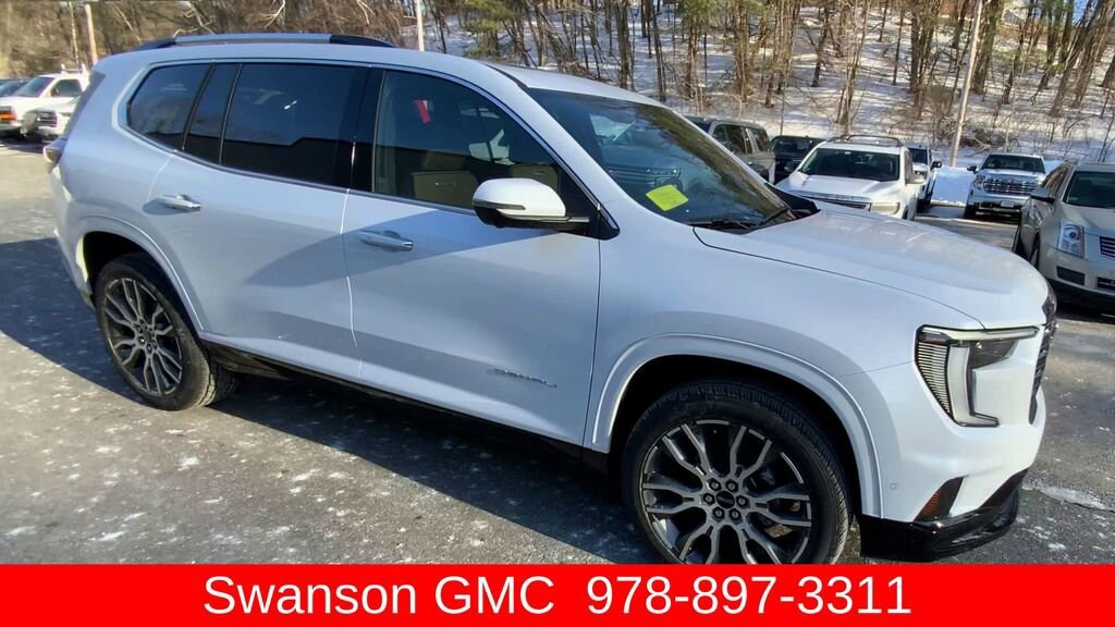 White 2026 GMC Acadia Denali Ultimate 8-Speed Automatic 2.5L DOHC Woodland Mahogany Full Lt Leather.