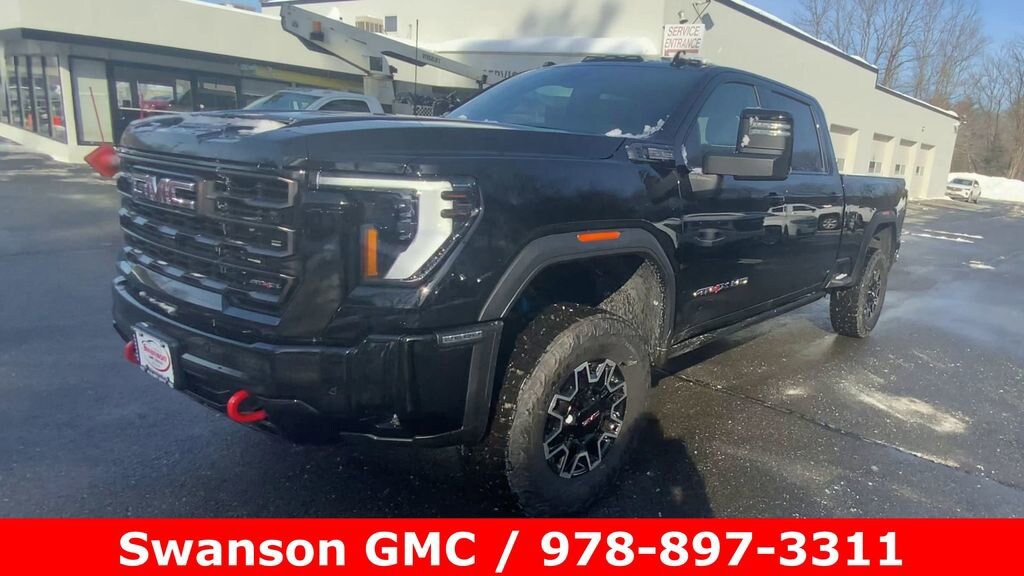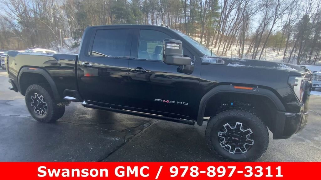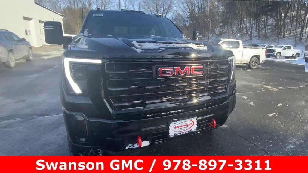 Onyx Black 2026 GMC Sierra 2500HD AT4X 4WD 10-Speed Automatic 6.6L V8 10-Speed Automatic, 4WD, Jet Black Leather, 16-Way Power Driver Seat Adjuster with Lumbar, 16-Way Power Passenger Seat Adjuster with Lumbar, 2 Charge-Only Rear USB Ports, 2 Charge/Data USB Ports Inside Center Console, 2 USB Ports, Apple CarPlay/Android Auto, Bed View Camera with Two Trailer Camera Provisions, Bose Premium Series 12-Speaker System, Brake assist, Electronic Stability Control, Following Distance Indicator, Forward Collision Alert, Front Pedestrian Braking, Garage door transmitter, Gloss Black Door Handles, Gloss Black Header Grille and Grille Insert Bars, HD Surround Vision, Heads-Up Display, Heated steering wheel, Heavy-Duty 80 Amp Battery, Hill Descent Control, Hitch Guidance with Hitch View, in-Vehicle Trailering System App, Lane Departure Warning System, Leather steering wheel, LED Cargo Area Lighting, LED Smoked Amber Roof Marker Lamps, Memory seat, Multicolor 15 Diagonal Head-Up Display, Power moonroof, Power Sunroof, Premium audio system: Premium GMC Infotainment System, Radio: AM/FM Stereo with Premium GMC Infotainment System, Rear Cross Traffic Alert, Rear Wheelhouse Liners, Remote keyless entry, Remote Vehicle Starter System, SiriusXM with 360L Trial Subscription, Spray-on Pickup Bedliner with GMC Logo, Steering Wheel Audio Controls, Steering wheel mounted audio controls, Trailer Cam Provisions and Trailer Viewing Software, Trailer Side Blind Zone Alert, Trailer Tire Pressure Monitor Sensors, Ultrasonic Front and Rear Park Assist, Wheels: 18 Machined Aluminum with High Gloss Black Accents, Wireless Charging, Wireless Phone Projection. Price includes: $500 - Purchase Allowance. Exp. 03/02/2026